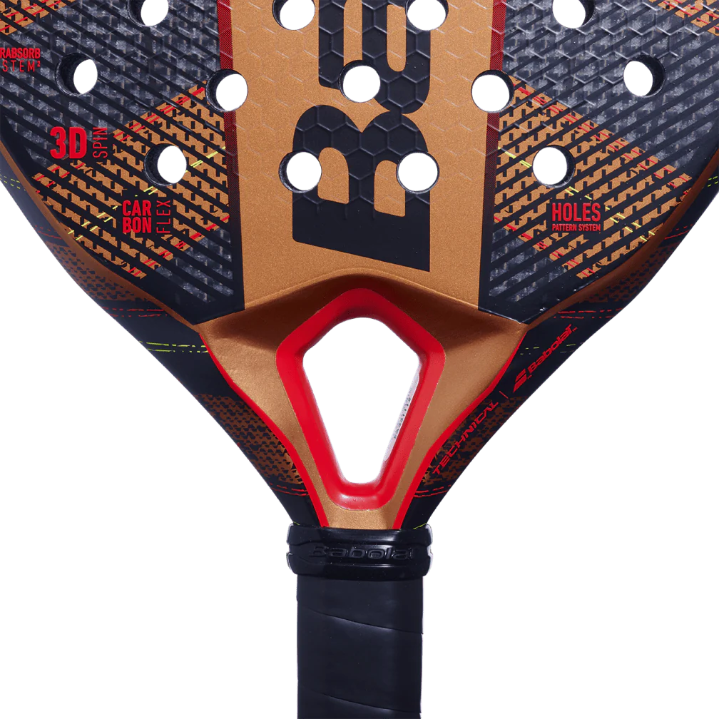 The new VIBRABSORB SYSTEM² technology, Powered by SMAC, provides optimal vibration dampening thanks to a combination of elastomers integrated into the carbon fibers at the core and the handle of the racquet.