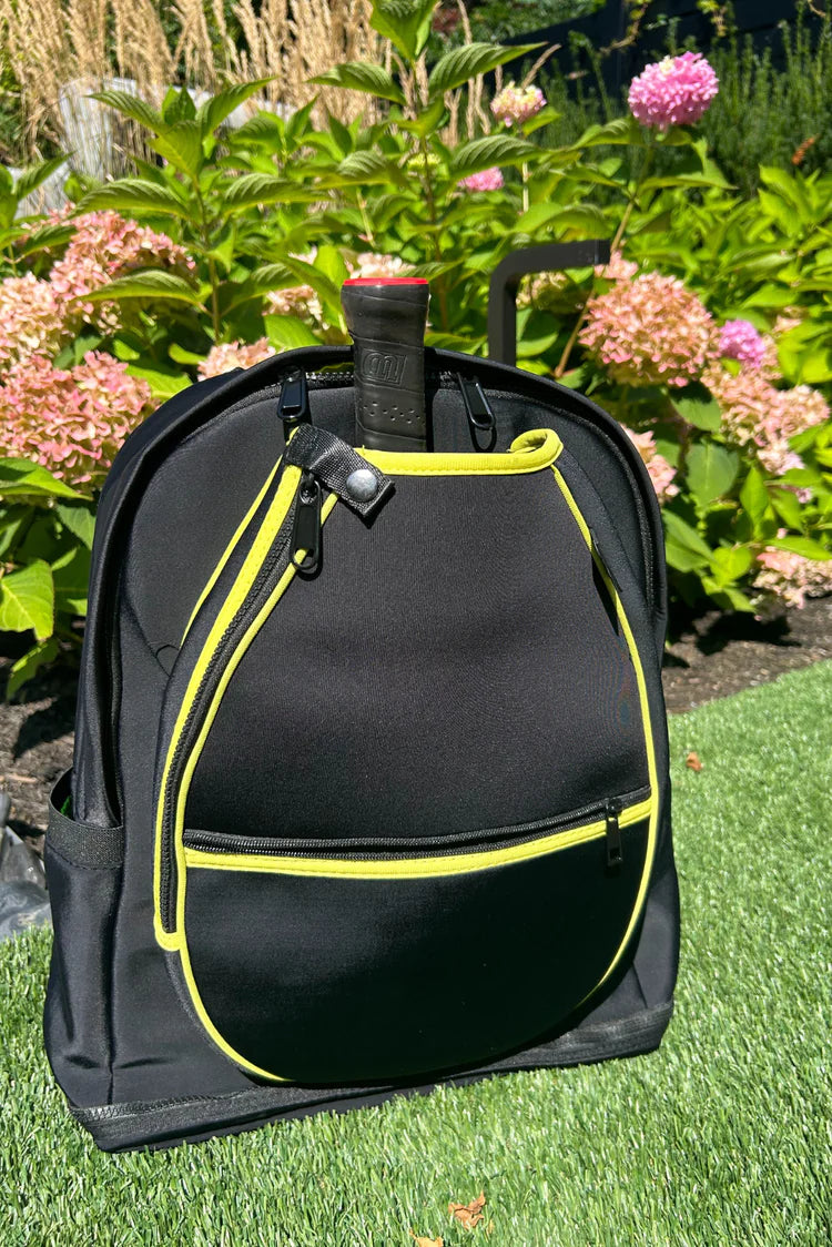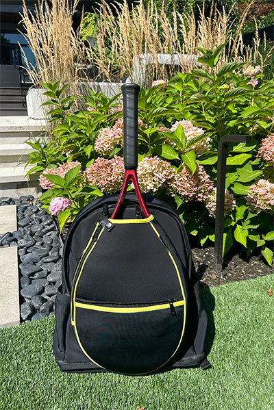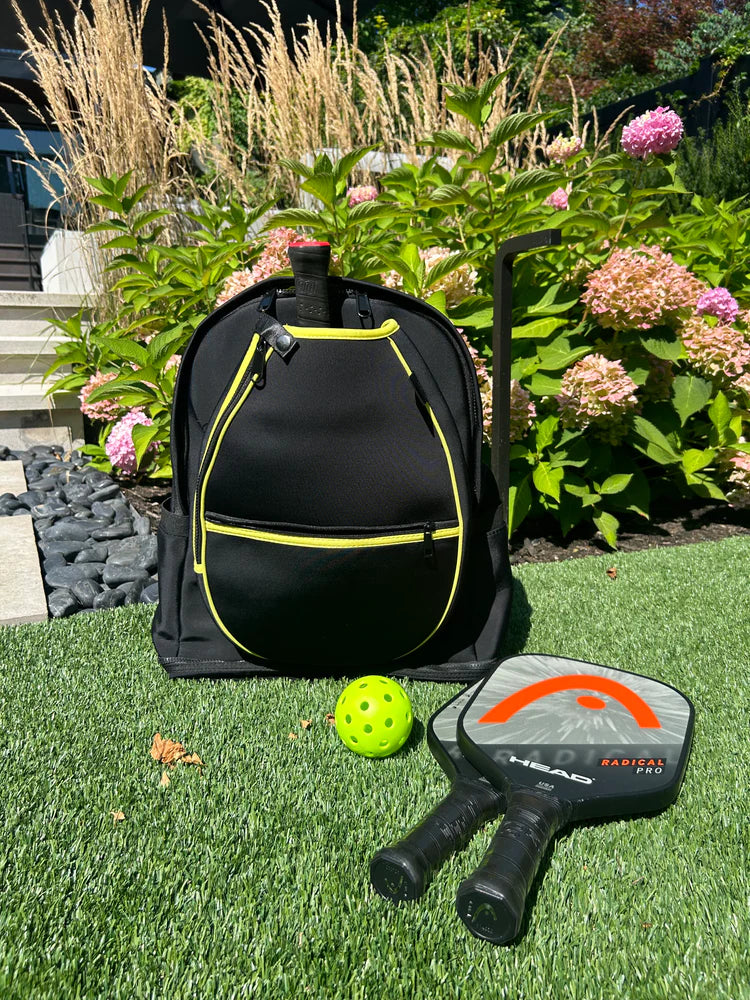This dual Tennis and Pickleball backpack has everything you need and more. Comes with dedicated interior pockets for balls and a base compartment to store extra shoes and clothes.