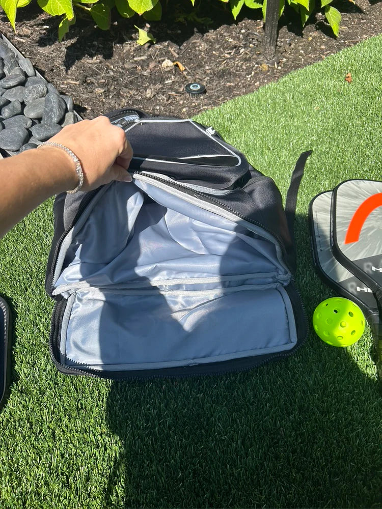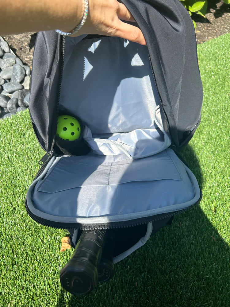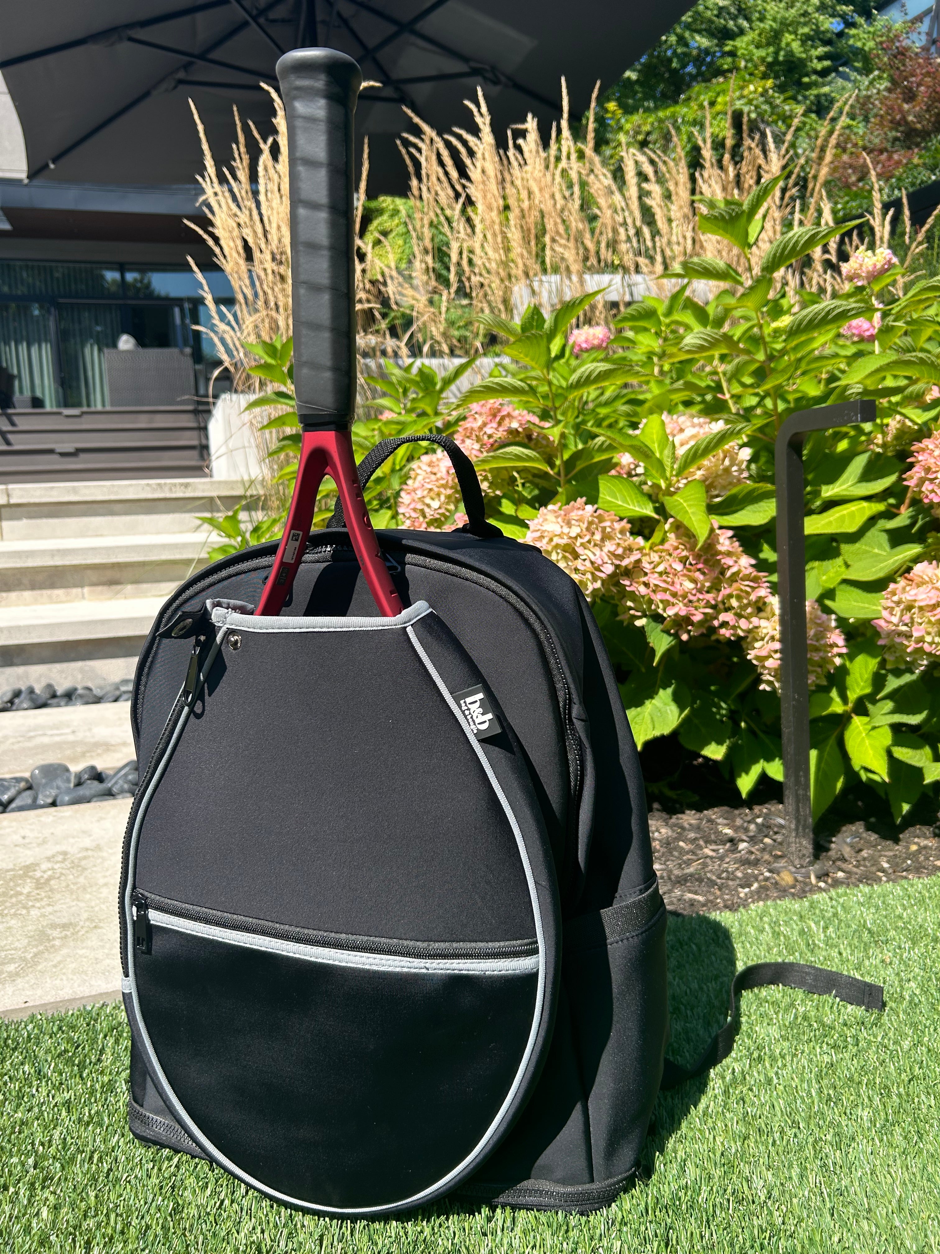 This dual Tennis and Pickleball backpack has everything you need and more. Comes with dedicated interior pockets for balls and a base compartment to store extra shoes and clothes.