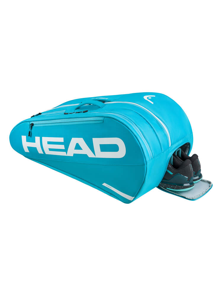 The other features include an integrated shoe compartment and an inside zipper accessory pocket. With the backpack carry system, and the top handles, you can choose between putting the TOUR RACQUET BAG L BL over your shoulder or back or carrying it by hand. As an illustration of how HEAD is trying to reduce plastic usage, the hangtag is made from recycled paper and tied with hemp cord, and the bag is presented in a recycled plastic bag.