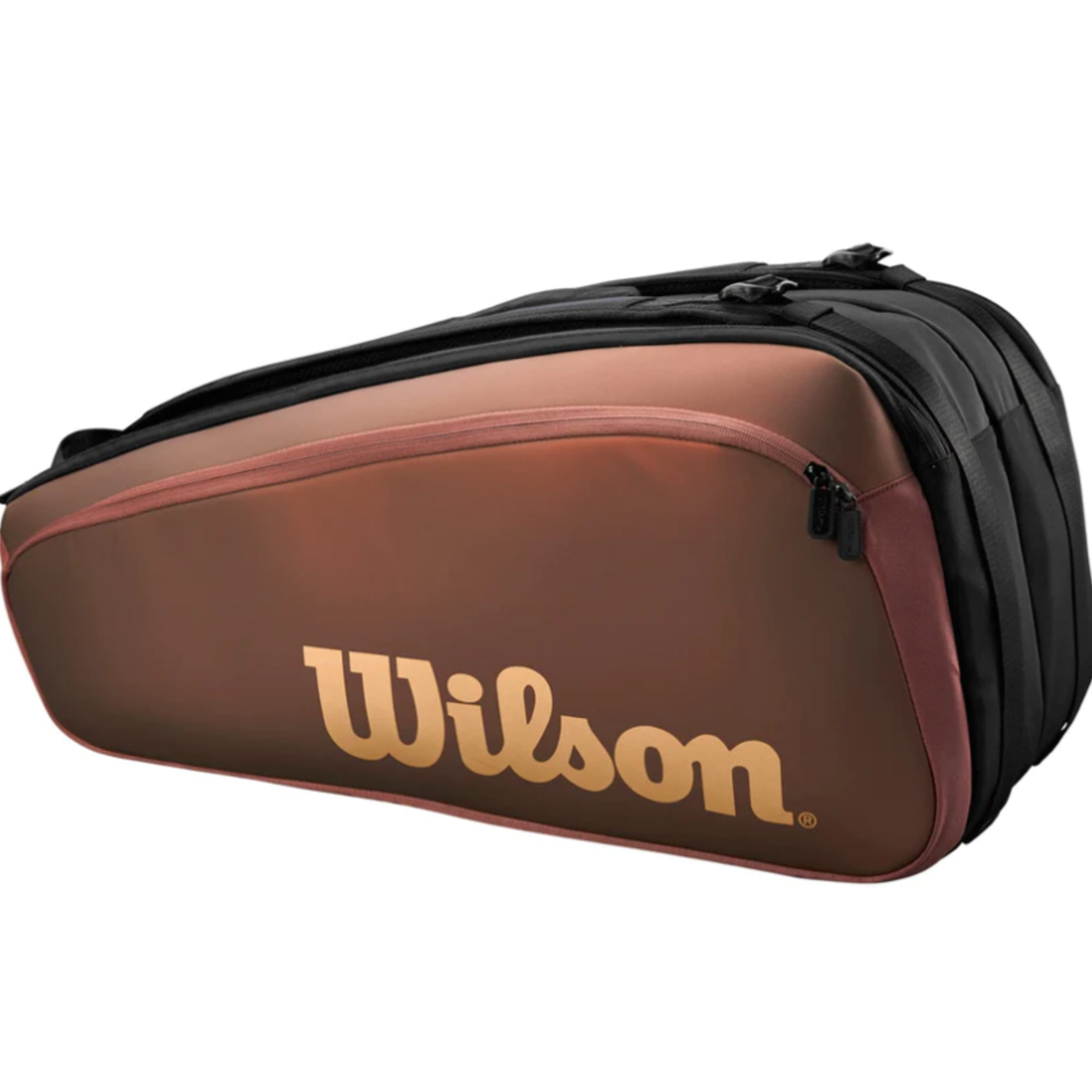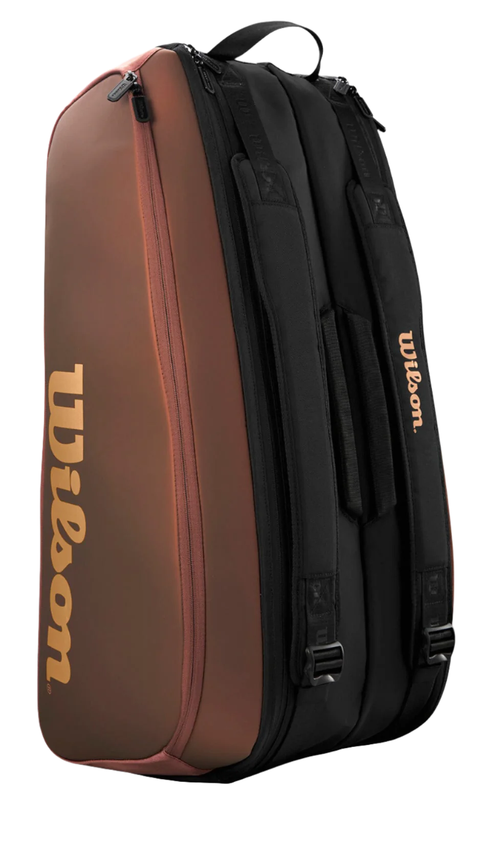 One for the high-level tennis player. This Wilson racket bag has all the clean appeal of our Pro Staff franchise with a design that matches the latest version of the Pro Staff performance tennis racket. There's enough space for up to nine rackets in the two main compartments, each of which are thermo-regulated to shield from extreme temperatures and preserve racket tension. You can stash extra gear like balls and grips inside the large exterior pockets. The bag is reinforced at the sides and comes with dual carrying straps.