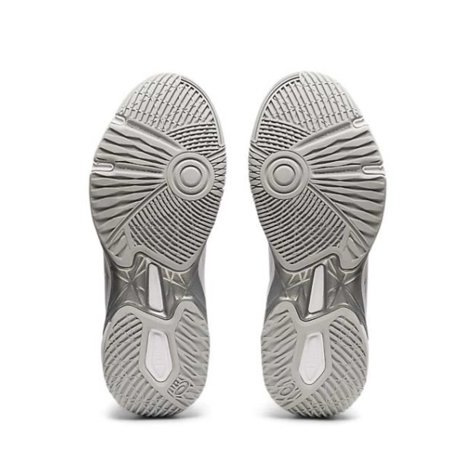 A wrap-up outsole and outrigger is a functional support component during side-to-side movements. In contrast, the heel wrap-up expands the contact area during the landing phase of your stride to help generate a smoother landing. Lastly, the flexible grooves in the outsole are complemented with a side grip design that improves flexibility on the court.